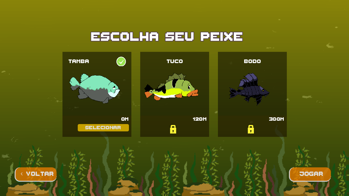 Comece com o Tamba (tambaqui), e percorra o máximo de metros possível para desbloquear novos peixes amazônicos, cada um com habilidades únicas de corrida.